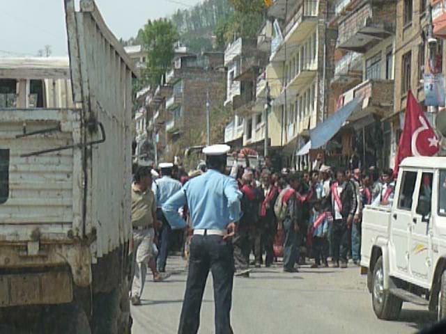 We left Kathmandu and the Vajra Hotel in a large passenger van on a drive to the city of Gorkha. Once in Gorkha, we met a surprise Maoist protest that shut down the road leading to our trail head. This doesn’t mean we waited around…our group unloaded the gear in the middle of a busy city street and we began hiking amidst red hammer-and-sickle flags and crowds of naive Nepalis who support the last gasp of Maoist communism in the World.