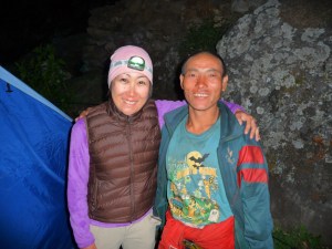It was good to leave Barpak behind and to set up camp in a large, terraced pasture outside the town. The sky was gradually clearing after showers earlier that looked like snow in the higher elevations north of us (yes, this is foreshadowing). We were early enough in the day that we could relax and enjoy a well-earned moment just sitting in the chairs that were set up for us the moment we stopped. The team started food preparation, and asked us if we’d like to take a shower…it was shocking…we didn’t expect warm showers and we emphatically told them, “Yes!” After cleaning up, we sat and enjoyed our commanding view of the Gorkha Himal to our northwest, which rises very quickly to the peak of Baudha Himal (6672 m., 21,890 ft.). This was the first time we felt we were truly entering the Himalayas themselves, and it was thrilling. Next post: Part 4: Barpak to Rupina La.