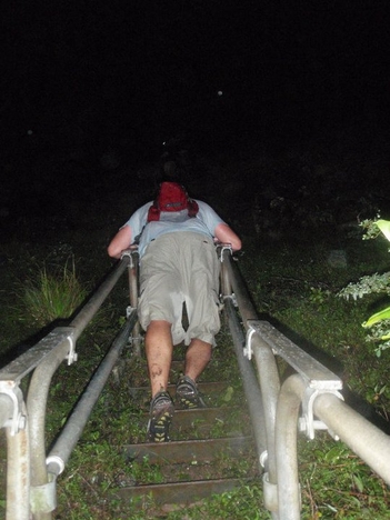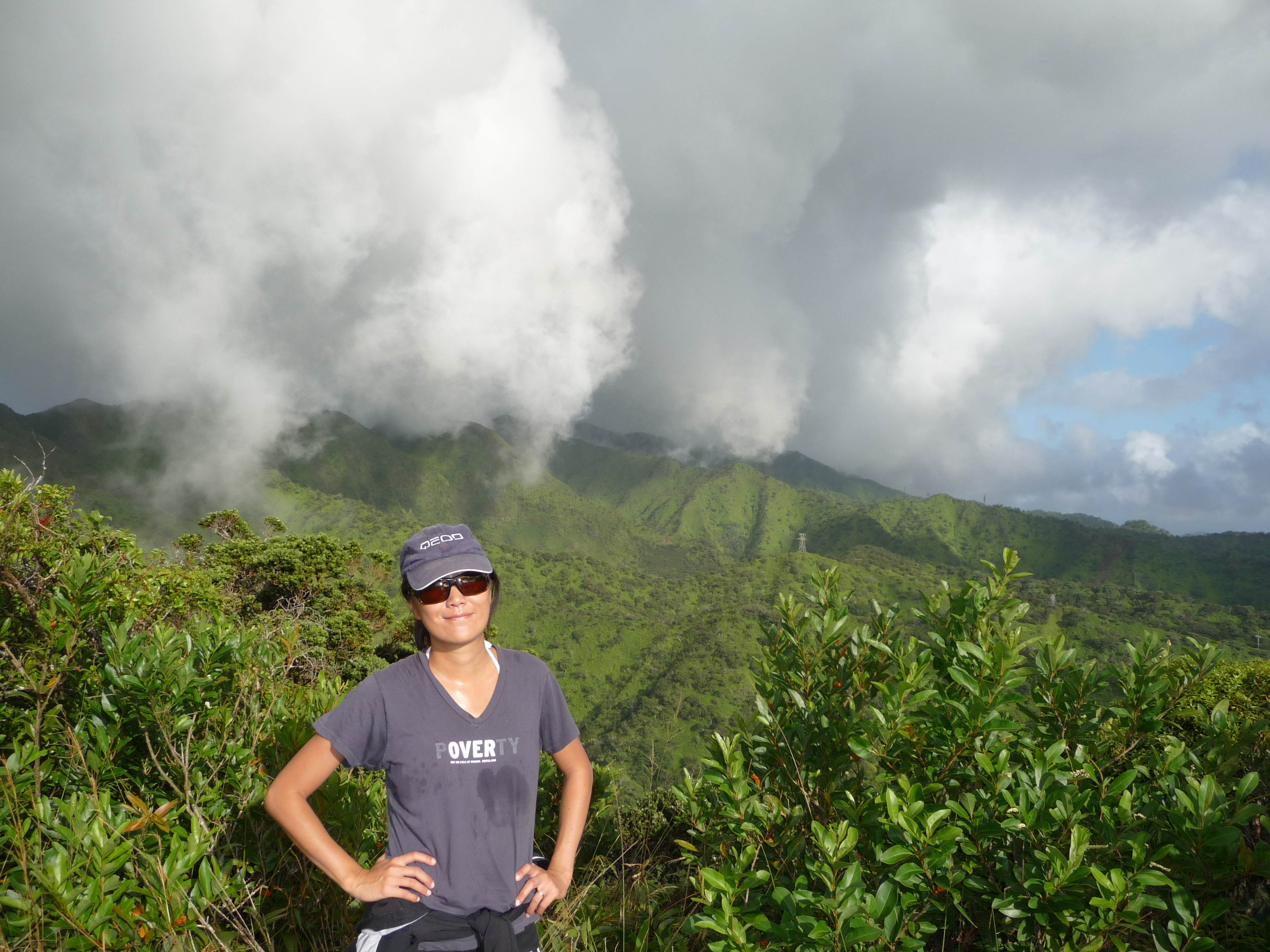 The staircase was created by bolting sections of pre-made steel stairs into the rock, and then connecting each section together so that the staircase could ‘follow’ the contours of the ridge. This meant that in the steepest sections, the stairs were much more like a ladder, and in the less steep areas, more like a flat, steel walkway. Since we were on the windward side of Oahu, the trade winds brought clouds around us which made the staircase slippery but also obscured our view of just how far the drops were on each side. It was a wet, cold stair-master that lasted an hour an half on the way up and less than 45 minutes on the way down. The view of the lights of Haiku, Kailua and Kaneohe Bay were worth the climb. Going down was the more treacherous direction as the sometimes-vertical pitch meant turning around and going down ladder-style. This is an exhilarating hike for those willing to break a few rules.