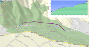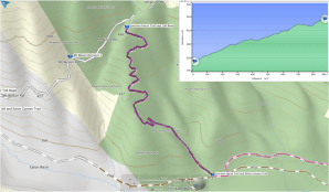 Once on the Mt Wilson Toll Road (no longer an actual toll road), the trail is wide enough for Forest Service trucks and a favorite of bicyclists. It also far less steep than the Horse Trail, though it has sections that make you consider a little more conditioning. Remember that mountain bikers can come around the next corner at high speeds and watch for rattlesnakes that love to sun along the the 3 km (1.8 miles) way to the Flats. The total elevation gain is 282 m. (874 feet) and is moderately difficult.