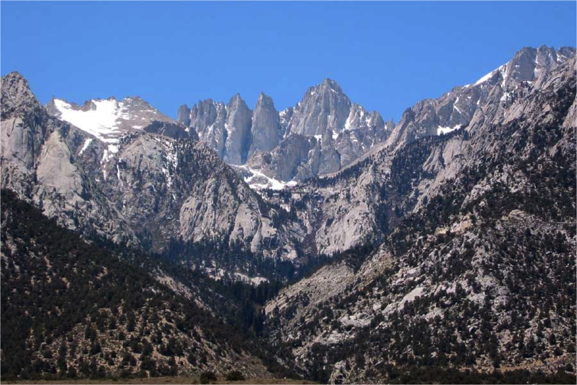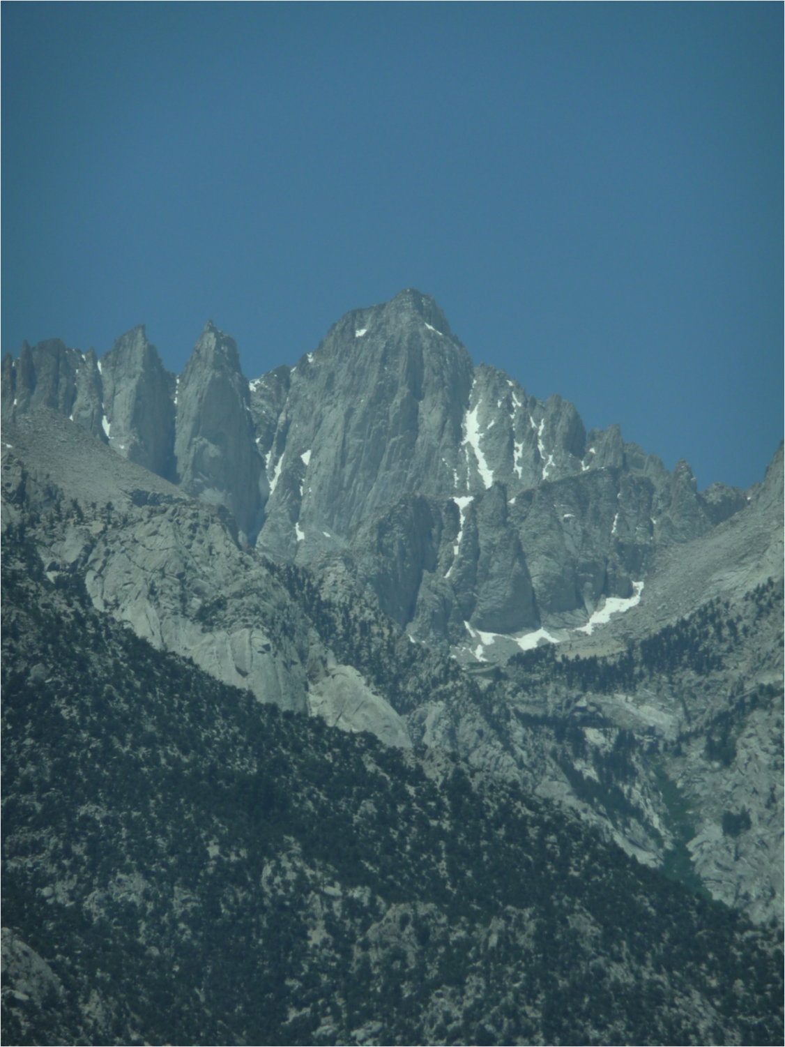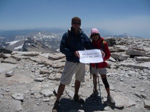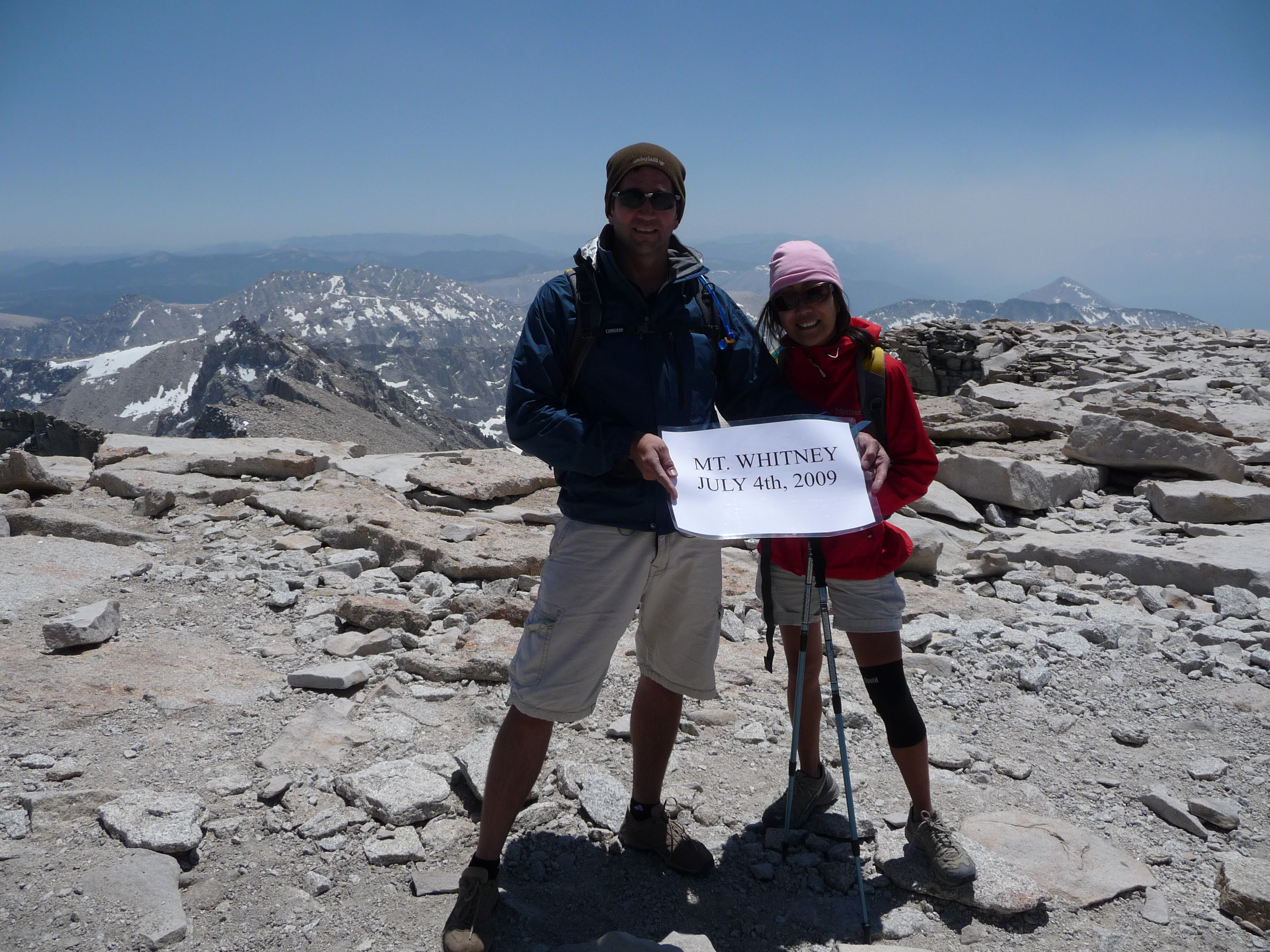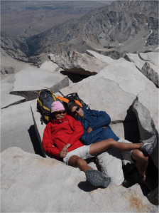 I’ve heard it said that no Californian can call themselves a climber without reaching the summit of the highest peak in the Lower forty-eight. Mt Whitney, at 4421 m (14,505 ft), is not the most difficult peak to reach, but it is a long, challenging trail to reach the summit. We joined a group that included a former coworker and two of his friends for a one-day hike planned for the Forth of July, 2009. Most importantly, they had a permit reserved, which is one of the challenges with this mountain’s restricted lottery system.