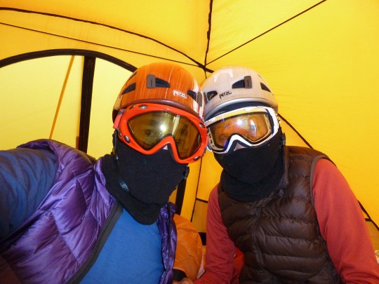 With everyone frozen from periods of inactivity it was time for tea, biscuits and more relaxation. Hot tea was served and we warmed up in the sun near our tents before each of us left to pack our duffel for the next day’s trip to High Camp. While we packed, large-flaked snow began to fall on our tents, leaving us wondering if there was greater accumulation along tomorrow’s route or if this was just the result of the afternoon’s passing low clouds. Dinner was an excellent combination of macaroni and spring rolls, finished off by canned pineapple. Last minute conversations were had about what to expect tomorrow, and with that, we retired to our tents for a much needed rest.