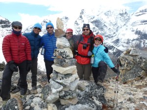 When we finally reached the crest, we put Buddi’s excellent cairn-building skills to work and he quickly constructed a pile aroud five feet in height. It was great to leave our mark on the summit of the hill by putting up the biggest (and, of course, best) cairn on that spot. We made our way quickly back down the hill as it had grown colder due to a high layer of cirrus clouds that had us concerned about possible poor weather approaching. With only two days to to the summit, the last challenge we wanted to face was poor weather. Our window for summitting was only two days if we were to reach Lukla for our flights back to Kathmandu.