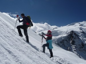 As a last reminder of the danger of climbing so high in fresh snow, we were treated to several avalanches on the way down. The sound and the obvious power were very sobering and we watched them in silence.