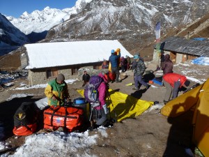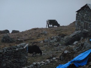 That night brought our first ever yak attack. We went to bed at the late hour of 8pm, and around 11pm, were awakened by a yak wandering through the campsite. We heard people running and the yak’s bell before hearing Nepali voices as they herded the yak carefully away from the fifteen or so tents that were in the area. A yak walking through a tent could injure someone quite easily and we truly appreciated how seriously our staff took the job of moving the animals along.