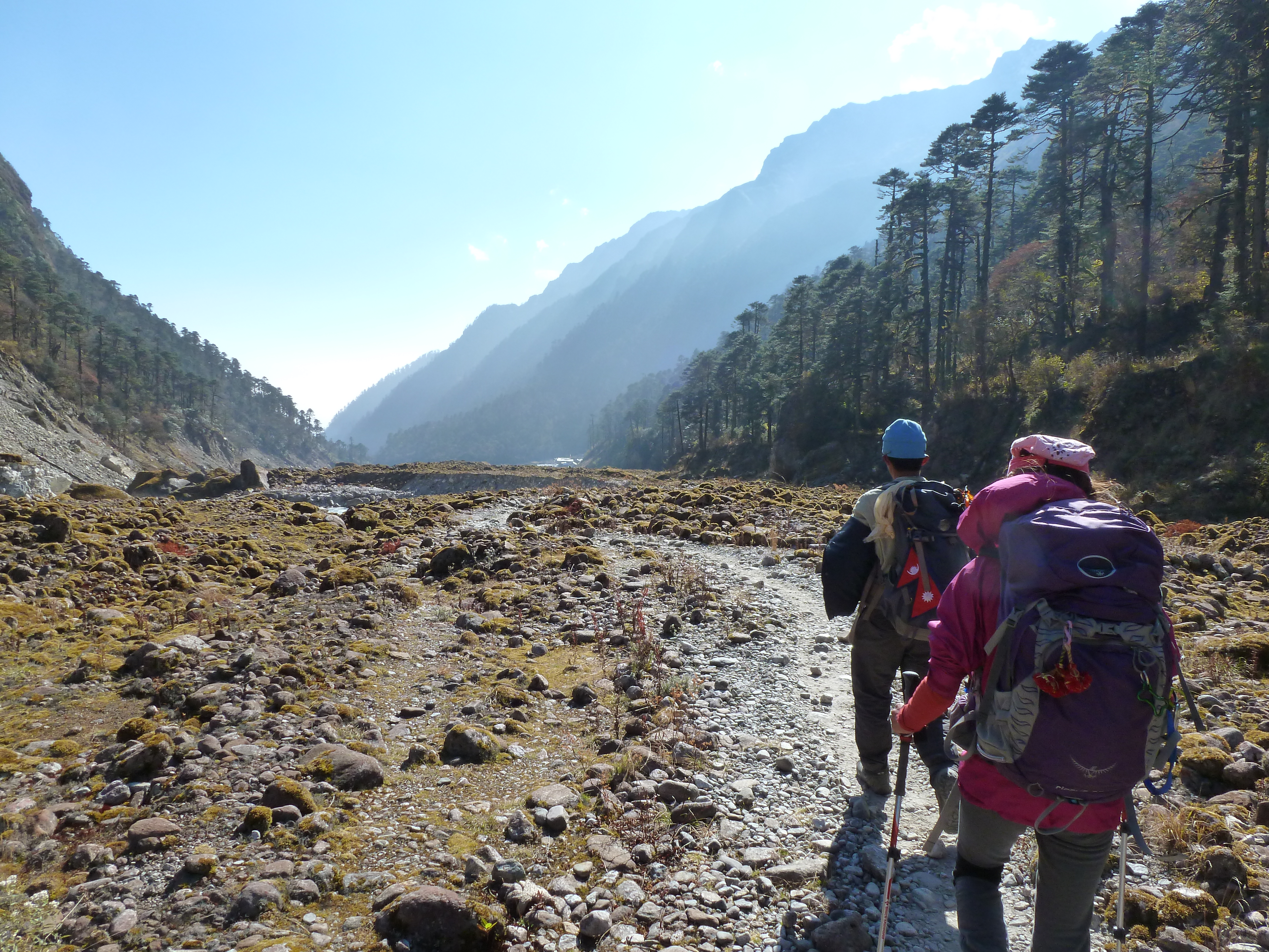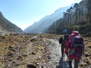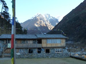 Despite being much lower, the temperature dropped quickly as soon as the west side of the valley was in shadows, which was very early. We also received the bad news that a porter that we saw carried on another porter’s back through Tangnag actually died at the monastery about halfway to Kote. He had Acute Mountain Sickness (AMS) and was being carried down as quickly as possible but not quickly enough, it would appear. When we saw him at Tangnag, he was conscious and looking around. Later, Karlin saw him laying on the ground and having what looking like a back spasm. We have heard of these things before but never have we been so close to this. It was very, very sobering to know that we were alive and healthy but not because of anything more than chance.