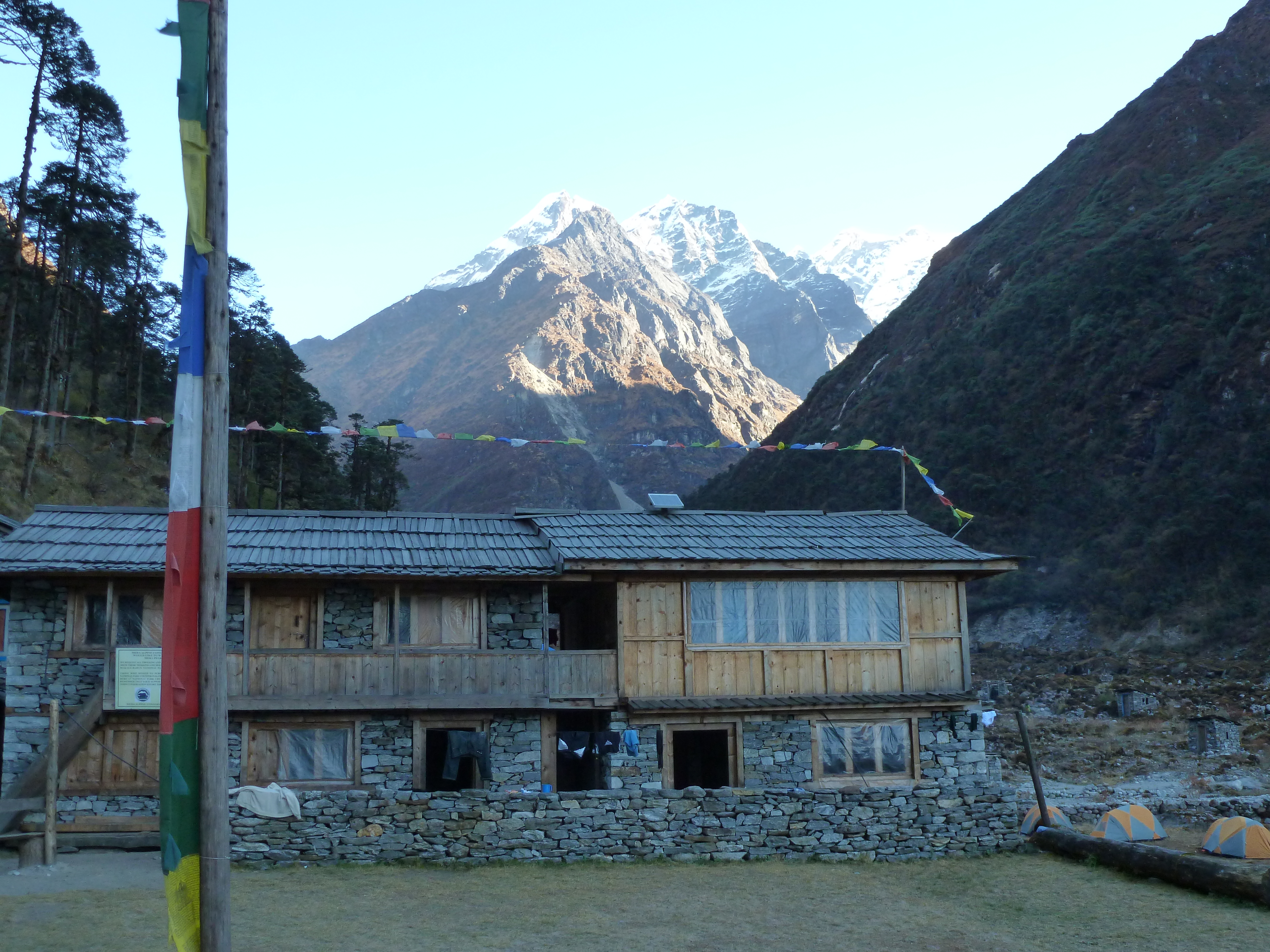 Coming down from Mera, Kote is the first town that appears to have permanent residents, evidenced by nicer buildings and even the presence of children and families. Many of the structures appeared new and the roofs, rather than being of shingles with large gaps, were blue tin and looked significantly more water and weatherproof. Surprisingly, Jeanne and I arrived ahead of the porters, who showed up about thirty minutes later with our personal items and tent.