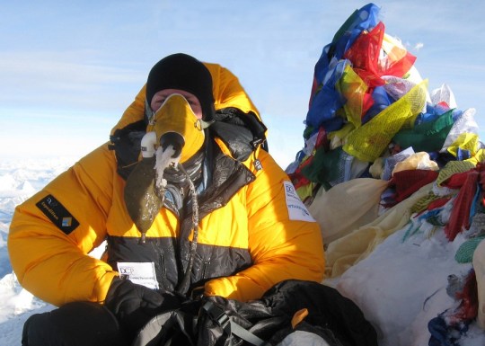 - 2008 – Mt Everest – Southeast Ridge as an unguided expedition, as the youngest member of the team and the only one to summit with just one Sherpa. I met Hillary when I was 15 and never expected to walk in his footsteps