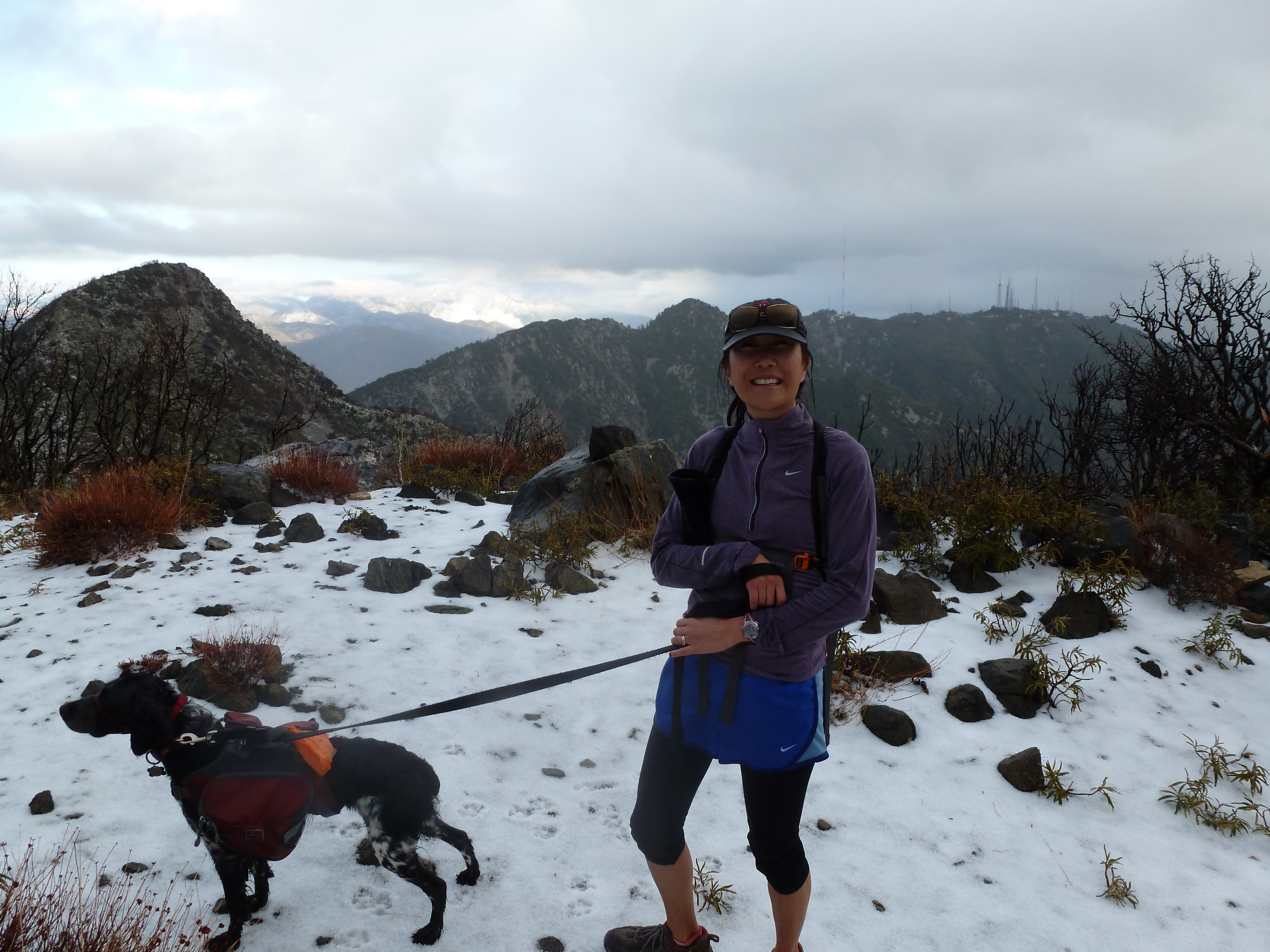 We love to find new hikes in Los Angeles, and this time we made a late decision to hike Mount Lowe, a 1,708 m (5,603) peak just north of the more-famous Mount Wilson and stepped onto the Sunset Ridge Trail at 2pm. The sky was ominous but the forecast called for clouds and not rain, so off we went…without our waterproof jackets and only Jeanne with gloves and a hat. For people who try to be prepared for anything, we were prepared for little this time.