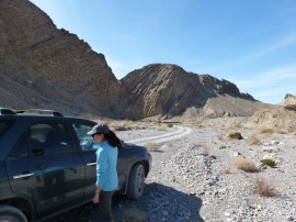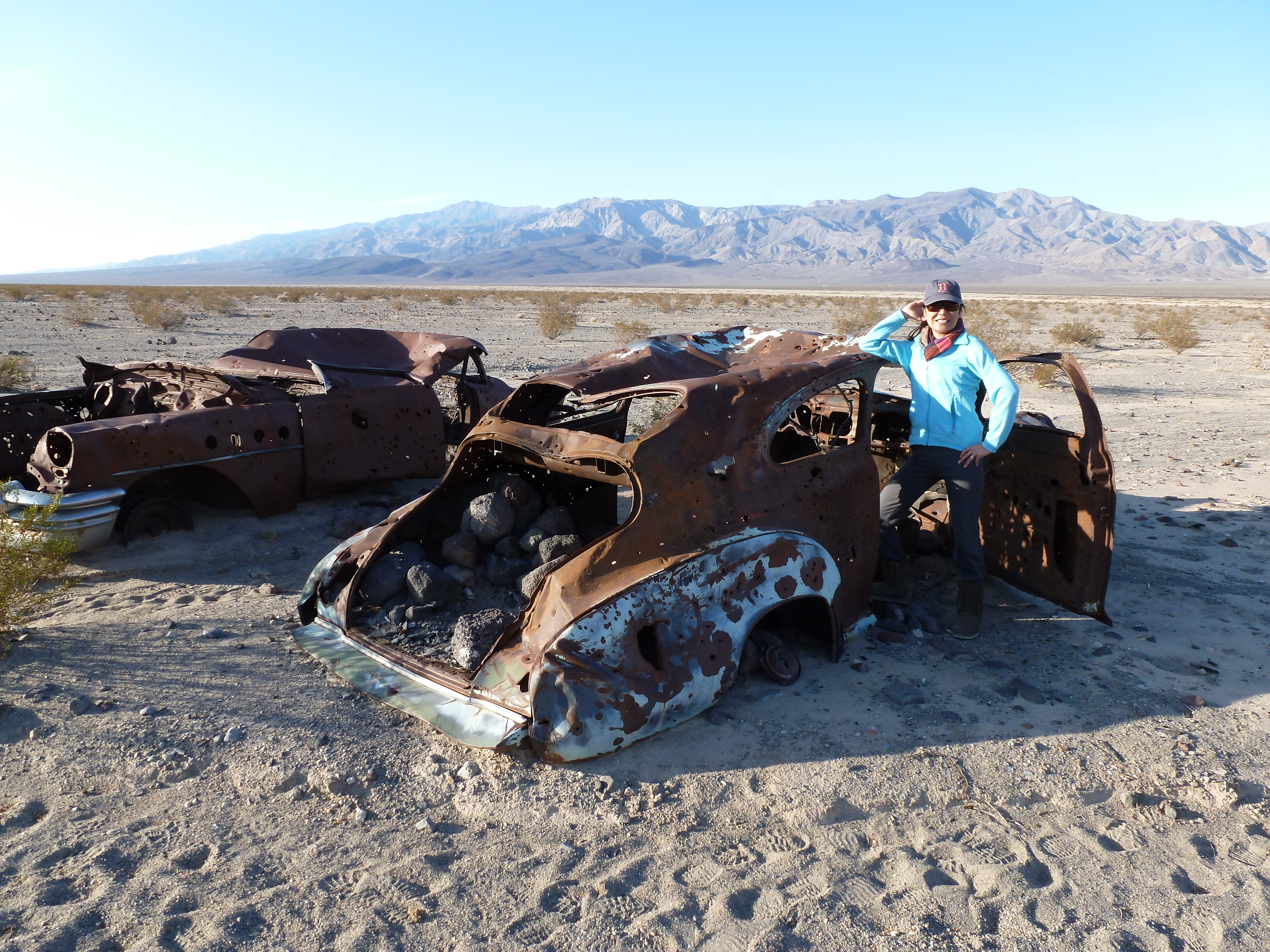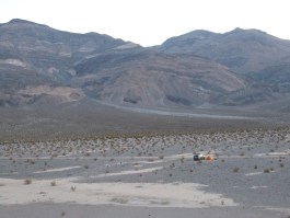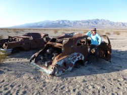 Stovepipe Wells isn’t much, but it is far more than anything around it. To call it an oasis would be a stretch. The winds were blowing as well, a bleak landscape for tents and campers alike. We had to take a moment, of course, to check out the used car lot that we came across.
