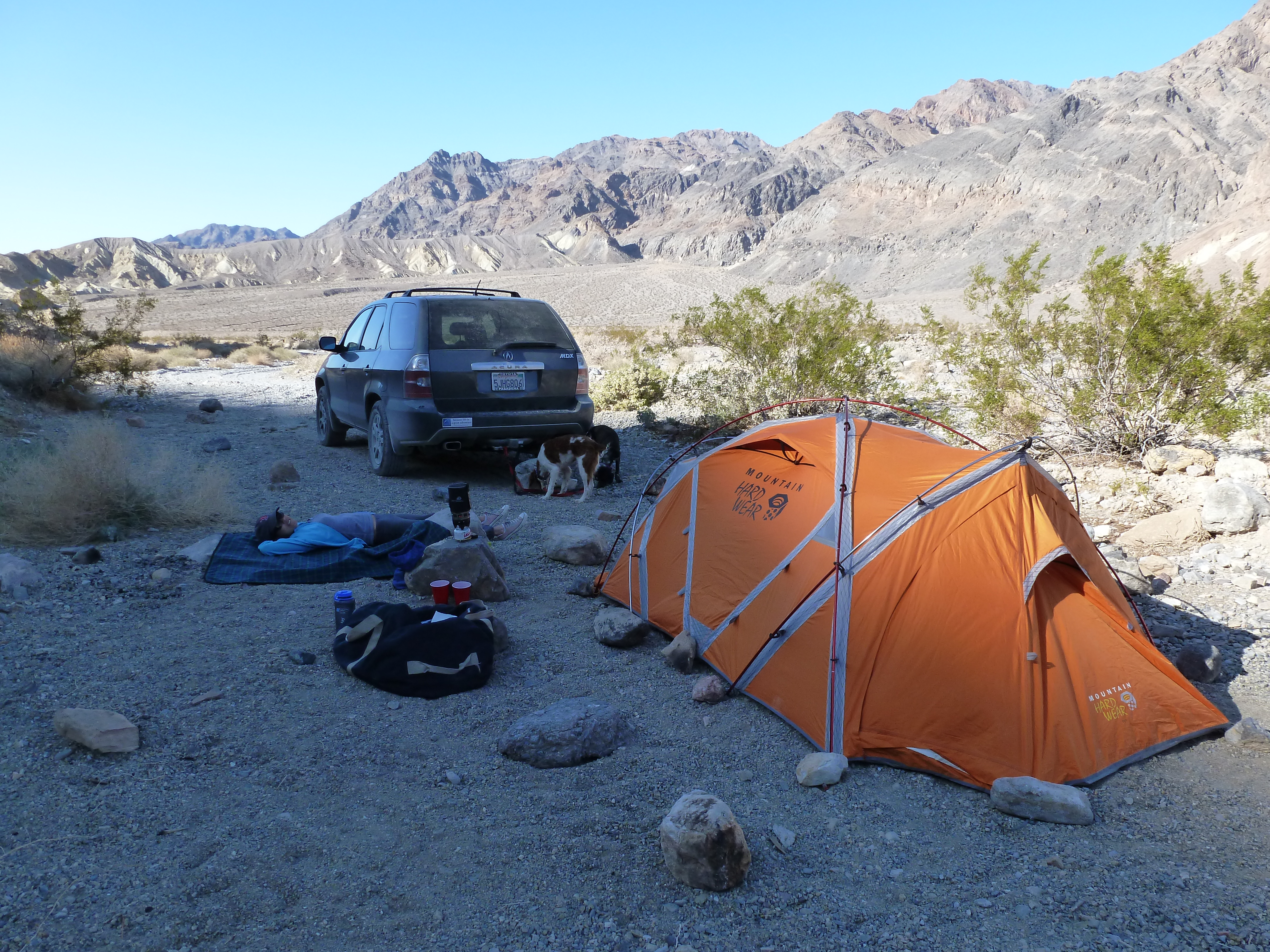 We found a great spot far from anyone and set up our camp. We wanted to be sheltered from the infamous Death Valley winds, have an early view of sunrise (so no mountain to the southeast, and peace and quiet. We found all of those things and had an extraordinary time in our cozy campsite.