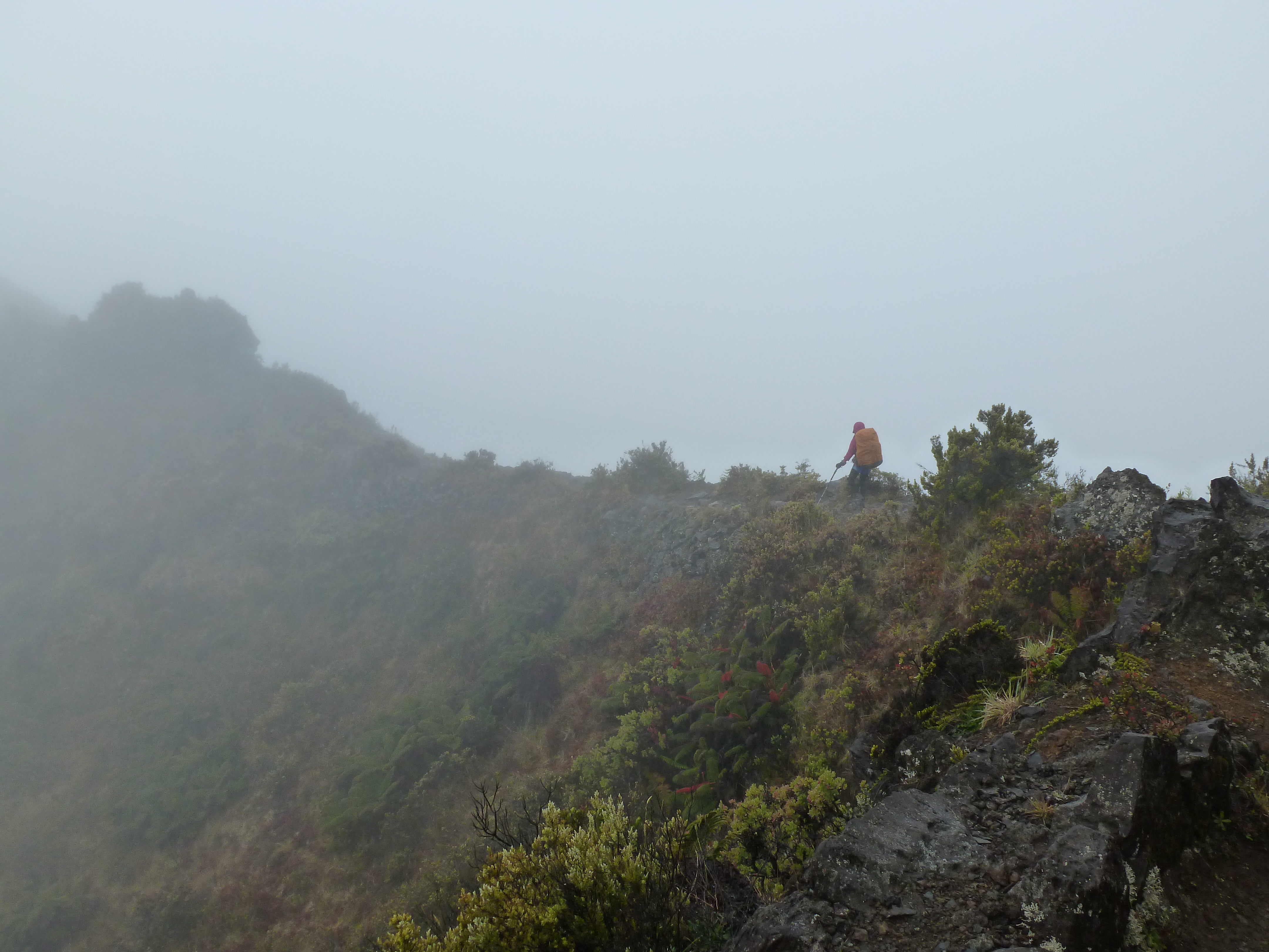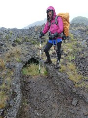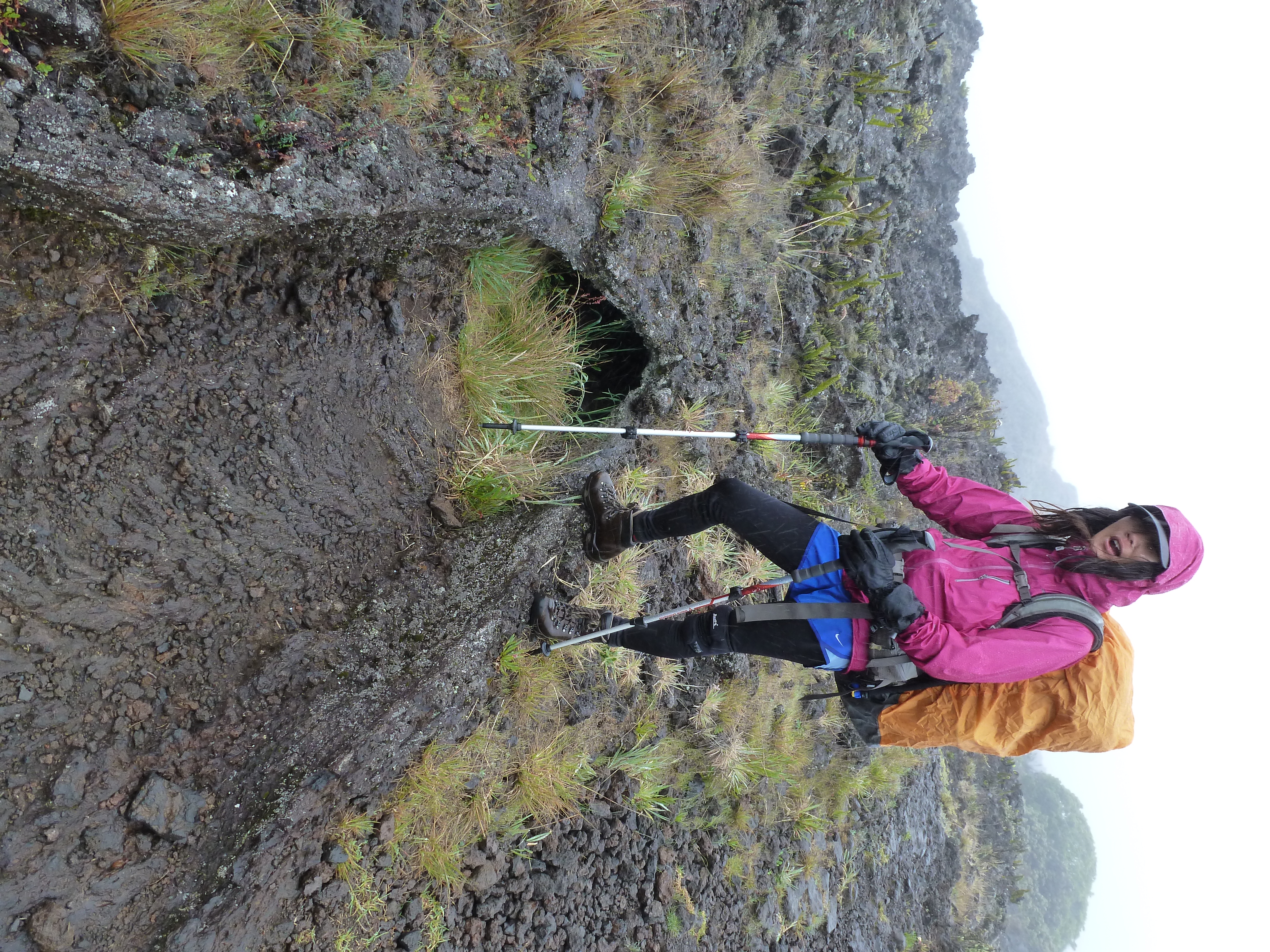Leaving the Crater floor meant a return of vegetation, but also of rain. We also reentered an enormous lava flow that managed to wind its way through man-made and natural pathways. The mist became closer as we descended and soon we were again enveloped in the light rain of a cloud.