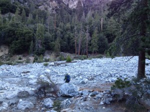 Any hike of this length needs a warning that the summit is only ‘halfway there.’ Mt San Gorgonio by Vivian Creek is a very long day, and while every hiker is energized by standing on the top, the very long walk down is the most dangerous and difficult part of the day. We were exhausted and sore by the time we reached the bottom of the The Wall as it entered the rocky wash.