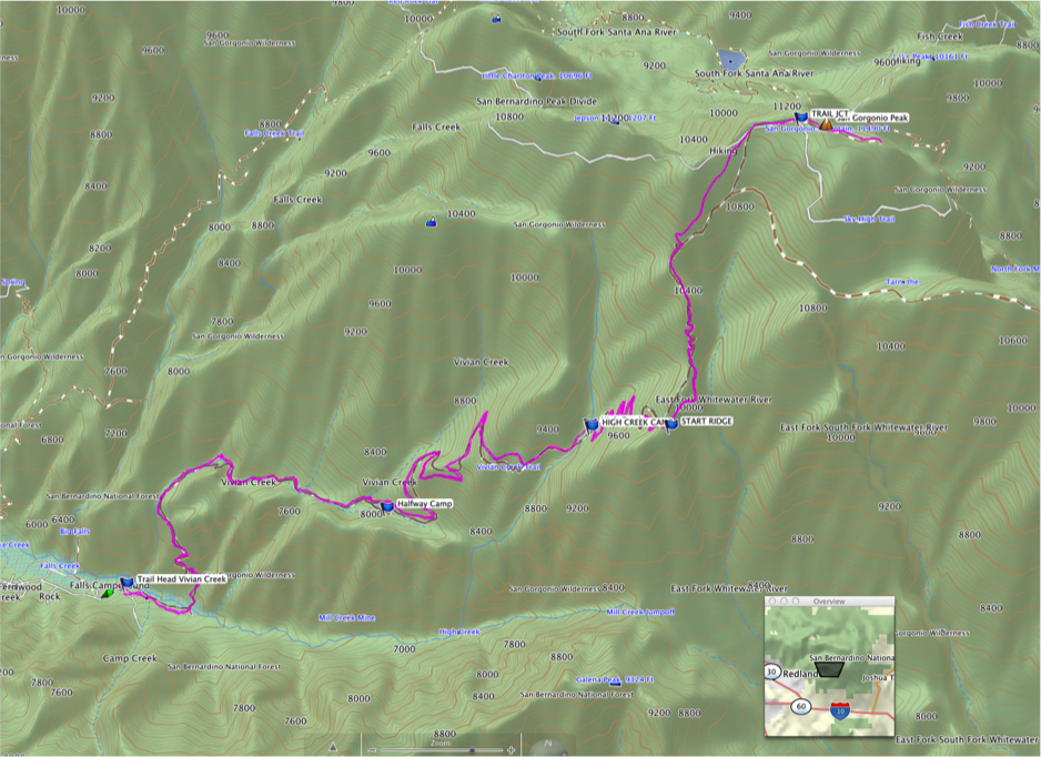 While there is camping along the trail at the campsites listed below, we chose to climb Mt San Gorgonio in a single day. Even though we chose the shortest path to the summit, it made for a very long hike of 29 km (18 miles) round trip.
