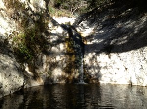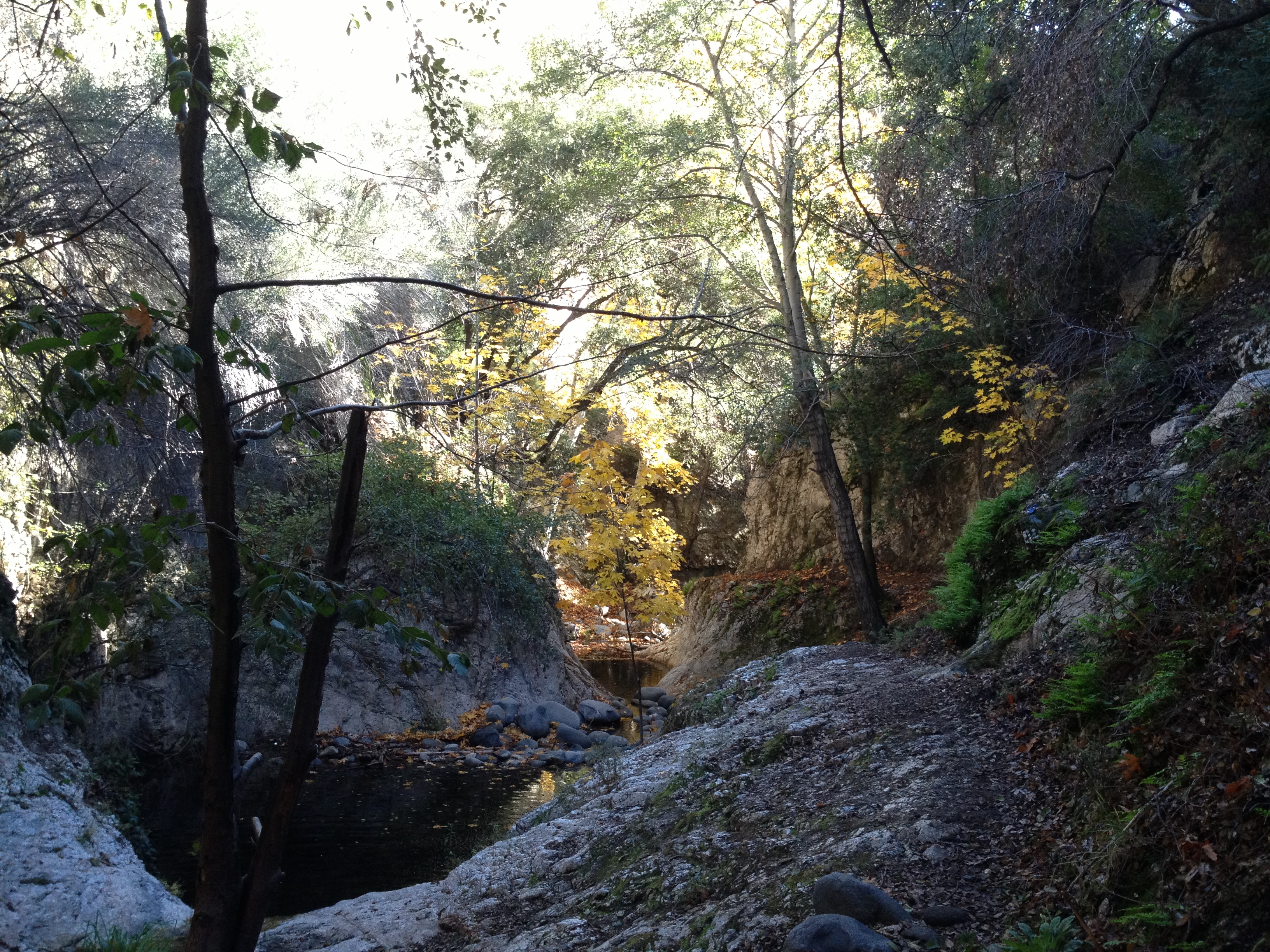 Once the trail drops back down to the stream, hikers can go left to the Switzer Falls or right to Bear Canyon. We first went to the left to explore the waterfalls, which are found just a few minutes upstream. This isn’t a large waterfall compared to Eaton Canyon or Sturdevant Falls, but is a very pretty spot where you’ll be unlikely to be alone (it is popular). Even on Thanksgiving Day, we shared the view with several groups.